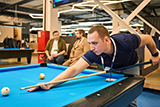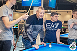 Участие в одном из турниров: московская пирамида, русский бильярд, американский пул, дартс.